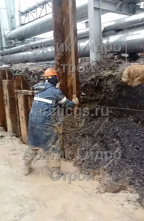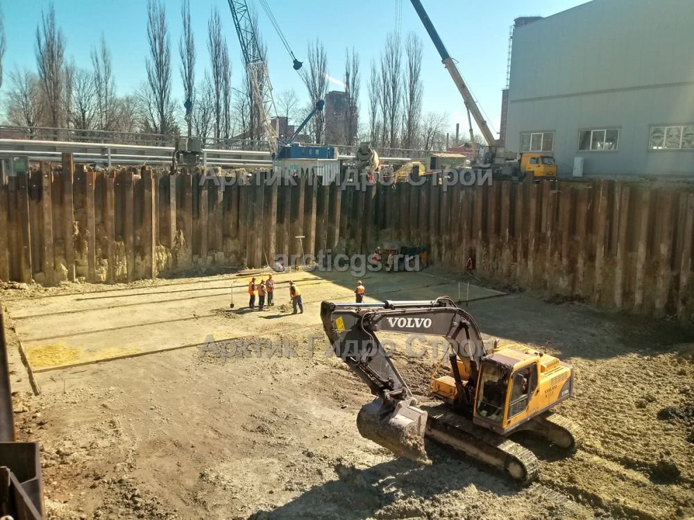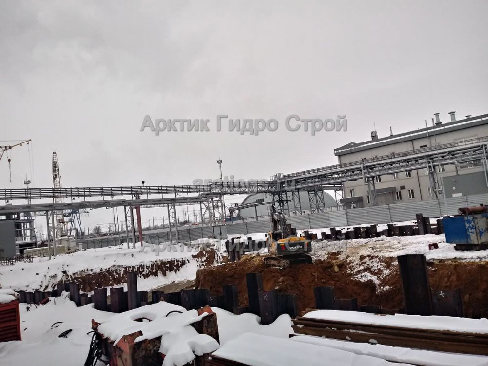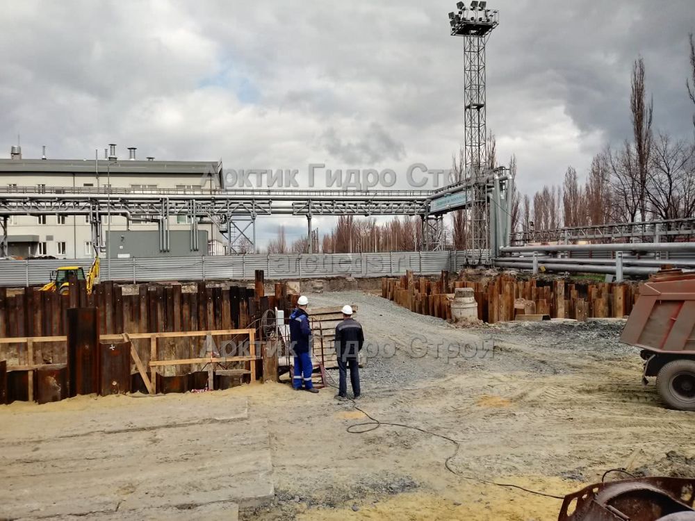 Поставка шпунта Л5-УМ и вибропогружение с применением лидерного бурения на Промплощадке Лебединского горно-обогатительного комбината. Далее шпунт извлекли.